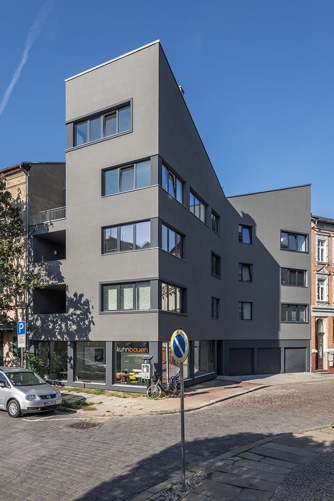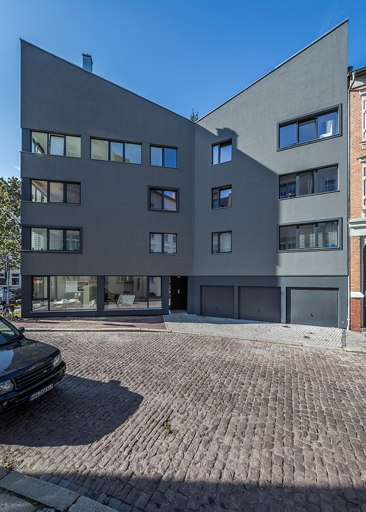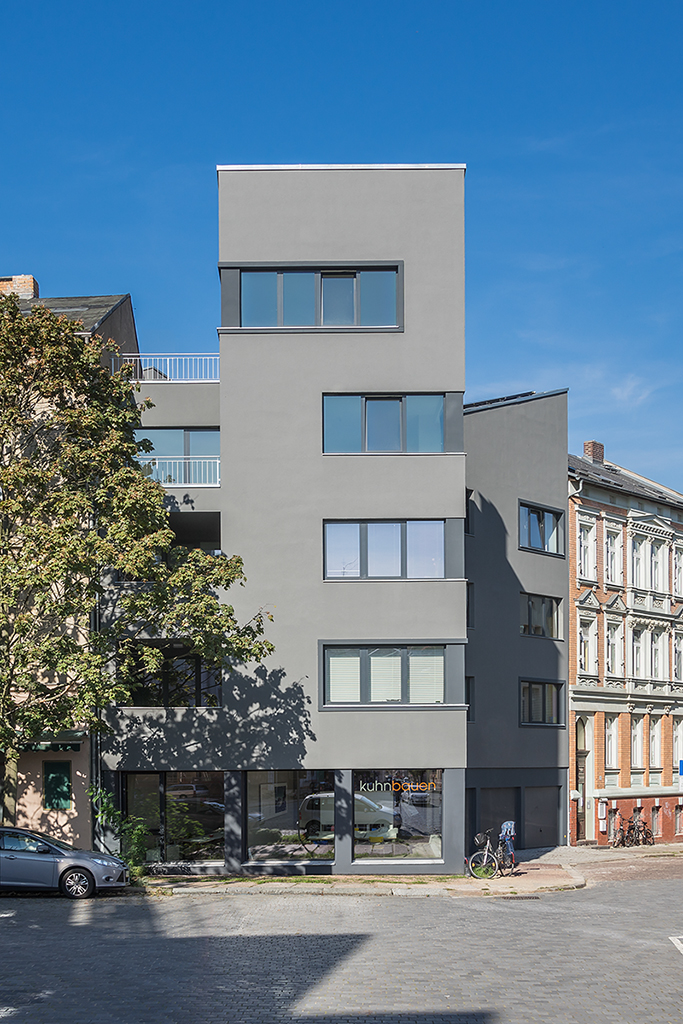 neubau I mehrfamilienhaus I 5 wohneinheiten I stellplätze im erdgeschoss I büro kuhnbauen I georg-cantor-strasse 1a I halle (saale)